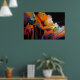 The contrast between darkness and radiant color creates a powerful atmosphere that feels both intimate and bold. The flowers are not defined by precise detail, but by movement and feeling, allowing the viewer to connect with the artwork on a deeper, more intuitive level. The layered textures and sweeping forms suggest passion, vitality, and the quiet strength found in nature’s cycles.