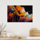 This evocative abstract artwork captures the soul of a garden through dramatic color, motion, and expressive texture. Luminous floral forms emerge from a deep, shadowed background, painted in rich hues of golden orange, warm ivory, crimson, teal, and soft violet. Fluid brushstrokes and dripping lines give the composition a sense of growth and release, as if the flowers are unfolding in a moment of intense emotional energy.