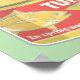 Un style publicitaire rétro illustrant une boîte de thon. Cette boîte de poisson a un étiquette qui dit que le thon est élevé dans Oméga 3 et pêché de manière durable. Attention à tous ceux qui aiment la nourriture en conserve / en conserve
