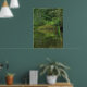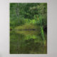 Les jours d'été sont chauds et ensoleillés, mais nous pouvons toujours trouver un coin cool et calme de l'étang pour la paix et la contemplation. Cette affiche est une étude dans les tons vert et jaune dans les bois environnants, dans les arbres, verge d'or et arbustes sur la rive et toutes les merveilleuses réflexions dans l'eau. De grands cattails dominent le premier plan.
