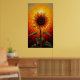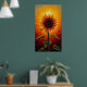 Immerse yourself in the breathtaking beauty of this Sunset Sunflower Art, a dreamy expressionist oil painting. The vibrant hues of orange and red from the blazing sun create an ethereal halo around the backlit sunflower, rendered with a glowing wet-on-wet technique. This captivating wall art poster is an exquisite addition to any space, bringing warmth and artistic flair.