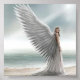 L'être angélique est debout près de l'océan. la Lumière est dans le ciel Luminant sur l'Ange qui ses ailes sont Blanches et gris. La peinture est de l'art.