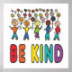 Le design Be Kind se compose d'un groupe mixte de nombreuses personnes au-dessus du message "Be Kind" dans les couleurs arc-en-ciel. Une image de diversité ethnique pour suggérer et soutenir la gentillesse entre tous.