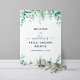 Cette affiche de bienvenue pour le brunch d'enterrement de vie de jeune fille présente de beaux eucalyptus, de la verdure et du feuillage ainsi que de la calligraphie avec de jolies volutes. Voir les articles coordonnés dans notre boutique, Enchanted Finch.