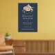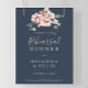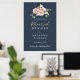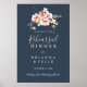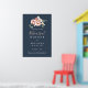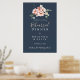 Ce poster de bienvenue à la répétition fleurie du jardin d'eucalyptus est parfait pour une répétition mariage moderne. Le design est composé de fleurs rose, blush, jaune rose avec des feuilles d'eucalyptus dans un arrière - plan bleu marine foncé.