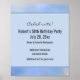 Vous êtes invités. La collection Palo Verde est un motif abstrait décontracté bleu clair et jaune, approprié pour les anniversaires, les mariages, les anniversaires de mariage, les baby showers, les événements de Pâques, les fêtes d'été, ou toute autre occasion. Description du design : le fond est une photographie d'un motif abstrait bleu clair et jaune, créé par les branches et les fleurs du Palo Verde, un arbre populaire du sud de la Californie, sur un ciel bleu. Le côté avant est surmonté d'un rectangle. Les bordures du rectangle sont d'un bleu clair du fond, l'intérieur du rectangle est également d'une couleur bleu plus clair extraite du fond. Sur le devant, des modèles pour votre événement, y compris un en-tête "Vous êtes invités" en police de caractères cursive, les détails du nom de l'événement, la date, le lieu, l'adresse, la ville, les informations