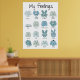 Vous cherchez une façon amusante pour vos enfants de vous montrer ce qu'ils ressentent? C'est une excellente façon pour vos petits de pointer et de vous dire ce qu'ils ressentent, quand ils ont du mal à s'exprimer. Cette impression montre un lapin drôle avec 16 expressions communes, il est éducatif, mignon et décoratif. **Cette annonce est pour 1 lapin imprimé en tons cool** L'impression est également offerte en couleurs arc-en-ciel et tons chauds dans des listings séparés, ainsi qu'avec un chat ou un chien au lieu du lapin. Si votre chambre est neutre, j'offre le même design en noir et blanc - vous pouvez même le colorer vous-même pour le plaisir :) - également dans une liste séparée.