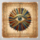 A traditional Egyptian painting on aged papyrus, depicting the radiant Eye of Horus symbol at its center. Rich, earthy colors of vibrant blue, deep red, and shimmering gold dominate the scene. Subtle, ancient hieroglyphs intricately frame the powerful symbol, evoking a sense of mystery and divine protection.