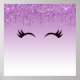 Une affiche au design design design et tendance. L'arrière - plan est un dégradé violet avec une image de parties scintillant faux scintillant qui descend du haut. Une paire de cils mignons ceinturés sous l'image de la parties scintillant.