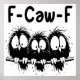 A humorous black-and-white graphic design showcases three black bird silhouettes perched on a wire, each with exaggerated big eyes. The handwritten black text humorously reads: "F-Caw-F." This quirky design is available on various products, making it a perfect gift for bird enthusiasts and fans of sarcastic humor alike.