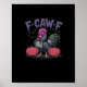 A simple clean chicken design featuring soft tones and bold “f caw” humor.