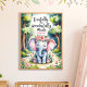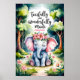 Une illustration aquarelle d'un éléphant portant une couronne florale, assis dans une forêt verdoyante. L'éléphant a les yeux fermés et est entouré de fleurs. L'arrière-plan est dense d'arbres, et il y a un chemin menant à l'éléphant. Au-dessus de l'éléphant, il y a le texte "Tu as formé mes reins avec crainte et tu m'as créé avec art". L'image d'ensemble a une qualité douce et rêveuse.