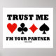 Montrez votre côté joueur de bridge avec cette affiche avec les costumes de quatre cartes et le dicton qui est souvent entendu à la table de pont : "Je suis votre partenaire".