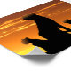 Une mère guépard et ses trois petits s'installent pour la nuit au coucher du soleil derrière eux. Leurs silhouettes se dressent nettement contre les couleurs éclatantes du coucher du soleil. L'art informatique de Kathie Miller.