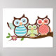 Famille de hiboux mignonne. Bébé hibou perché sur une branche d'arbre avec sa maman chouette et son papa hibou