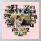 Affichez vos souvenirs de famille ou de mariage avec cette belle affiche murale collage photo en rose avec vos photos en forme de coeur. Ce joli design comprend de la place pour votre nom de famille à l'intérieur du design, plus 20 photos : 12 horizontales, 2 verticales et 6 carré de style Instagram. Vos photos s'ajusteront automatiquement pour faire la forme du coeur (par exemple : si vous téléchargez une photo carré au lieu de horizontale au centre, votre photo remplira la forme horizontale). Utilisez les modèles simples pour personnaliser. "Customisez plus" pour apporter des modifications plus détaillées, comme changer la police ou la taille du texte. Trouvez d'autres collages amusants dans la boutique PictureCollage : https://www.zazzle.com/store/picturecollage