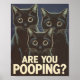 Cette affiche humoristique "Are You Pooping ?" présente un chat fantaisiste à l'expression étonnée ou curieuse, associé à un texte audacieux de style vintage. Le design rappelle les affiches de propagande classiques, créant un mur inattendu et accrocheur. Parfait pour les amoureux de les chats avec un sens de l'humour, cette affiche ajoute une touche décalée à tout espace et est sûr d'allumer des conversations... humour félin, salle de bain pour chat, salle de bain pour chat, art animal, chats, aquarelle, peinture animale, peinture pour chat, toilette, mème original. aquarelle, caca, chaton, drôle de chat, mur de toilettes, animal, toilettes, amoureux des chats, rétro
