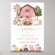 Add a personal touch to your baby shower celebration with these stylish and memorable party items! Design features farm animals (cow, horse, sheep, pig, rooster, chicken), pink barn and pink tractor on white background.