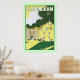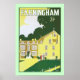 Affiche de voyage vintage pour les excursions en transport à Farningham à Sevenoaks, Kent, Angleterre dans un style art déco avec des lignes simplistes et le blocage des couleurs.