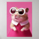 A wonderfully cute and humorous portrait of a hamster dressed in a bright pink outfit with a white collar and large, fashionable sunglasses. The vibrant pink background makes this charming animal illustration pop. This artwork is perfect for adding a touch of whimsy and cuteness to any space, appealing especially to lovers of pets, adorable animals, and maximalist or 'Kawaii' aesthetics. Ideal for decorating a bedroom, a stylish office, or a modern nursery.