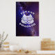 La version blanche du logo "Fat Cat Swagger" sur une galaxie violette et or. Le logo est un peu transparent pour permettre à la nébuleuse qui se trouve derrière de s'approcher un peu.