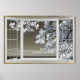 Affiche Faux Illusion de fenêtre - Vue Ominse en fleurs bl