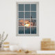 Affiche Faux Window Bois Blanc Fenêtre Cadre Flock of Bird