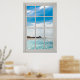 Affiche Faux Window White Wood Window Frame Caribbean View