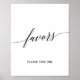 Cette affiche de faveurs de calligraphie noire élégante est parfaite pour un mariage simple. Le design neutre présente une affiche minimaliste décorée d'une typographie romantique et fantaisiste.