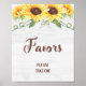FAVOR sign featuring a lovely sunflower design. Perfect for birthdays, showers & weddings.
