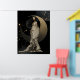 **This beautiful POSTER features a mystical Moon Keeper resting within a crescent moon, surrounded by celestial details and dreamlike textures.