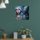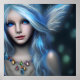 Art numérique représentant une belle fée magique mystique éthérée avec des yeux et des cheveux d'un bleu vif. art génératif