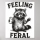 Affiche Feeling Feral Raccoon Drink Coffee Funny Trash Pan