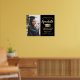 Ajoutez une touche personnalisée à une fête de remise des diplômes d'un collège ou d'un lycée avec une photo personnalisée en noir et or 18"x24". Image et tout le texte sont simples à customiser. Le design comprend un casquette de planche de mortier en faux papier, une typographie moderne, une calligraphie en écriture stylisée et une photo du diplômé, comme une image ou une image de haut niveau de la cérémonie de début. Veuillez noter que l'or est imprimé en couleur et non en papier. Ce panneau de remise de diplômes est une façon élégante de célébrer la journée spéciale. Félicitations au diplômé !