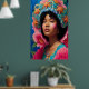 Image d'une afro-dame avec un casquette d'étoiles de mer. Il s'agit d'une oeuvre d'art générée par l'IA avec un thème floral.