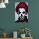 Affiche Femme clown cheveux rouges nez noir | Art AI