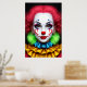 Affiche Femme clown rouge cheveux vert nez rouge | Art AI