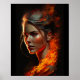 Portrait peint à l'huile du visage d'une femme stylisé avec un vêtement et des cheveux faits de feu. Il s'agit d'un autre design 100% original Snuggle Hamster.