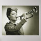 Jeune femme en uniforme jouant sur trompette, (B&W), portrait | George Marks | AssetID : 57520101