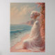 oeuvre d'imaginaire fascinante avec une femme éthérée drapée en tissu coulant, assise paisiblement sur une plage rose douce aux vagues douces et aux poissons flottants dans l'air. Entourée de fleurs fleuries et de tons pastel, cette scène côtière surréaliste rayonne de sérénité et d'émerveillement. Parfait pour les amateurs d'imaginaire, de rêve romantique et d'art surréaliste doux, idéal pour les gravures, la décoration murale et les accessoires élégants.