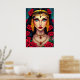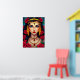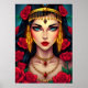 Affiche Femme mystique aux yeux bleus et aux roses rouges