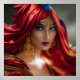 Affiche Femme rousse exotique coulée rouge Or bleu Abstrai