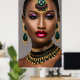 African American Classic portrait de mode étonnant Belle Glamour vert émeraude femme bijoux. Exotic Stunning woman Glamorisant femme tête bijoux des lèvres rouges gemmes. Un or magnifique Éblouissant Affiches femmes belle femme rouge lèvres rouge bijoux collier étouffant glam portrait
