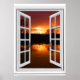 Affiche Fenêtre Fausse vue coucher de soleil