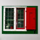 Affiche Fenêtre traditionnelle hollandaise rouge vert blan