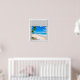 Belle vue tropicale sur l'océan, fausse scène de fenêtre, pour une salle de bain sans fenêtre ou mur de bureau. Illusion d'optique réaliste et amusante affiche pittoresque pour un bureau ou un mur d'étude.