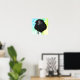 Un morceau d'art numérique d'un adorable corbeau qui fixe la caméra au milieu d'un arrière - plan à motifs vibrants