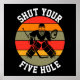 Le design de votre gardien de but de hockey à cinq trous comprend un gardien de hockey silhouette avec bâton de hockey et le texte qui dit : Fermez vos cinq trous!