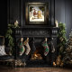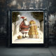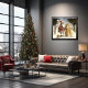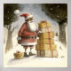 Une scène festive est représentée sur cette image, présentant un joyeux Père Noël avec une pléthore de cadeaux. Le personnage du Père Noël est bien représenté au centre, habillé de son costume traditionnel rouge et blanc avec un casquette moelleux. Il est chargé de cadeaux, exutant la joie des fêtes tandis qu'il répand la joie. L'ensemble évoque une atmosphère de vacances chaleureuse et cosy, parfaite pour répandre l'esprit de Noël