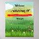 Poster de bienvenue du Mariage du Festival. Le thème du Festival champs verts et soleil. Un thème de festival moderne accueillant votre invité à votre mariage. Toutes les informations sont facilement customisées à vos informations. Noms et dates Partie d'une suite mariage de stationnaires.